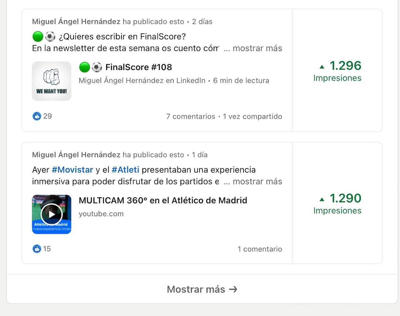 Últimamente estoy un poco molesto con el algoritmo de LinkedIn, principalmente por su efecto en la newsletter. A veces comparto actualizaciones donde escribo un pequeño texto y pongo el enlace a una noticia externa y consiguen un gran número de impresiones en los perfiles de las personas que me siguen. Sin embargo, ocurre todo lo contrario con la newsletter. Un trabajo que me lleva horas, con contenido original, mucho cariño y esfuerzo y el alcance es patético.